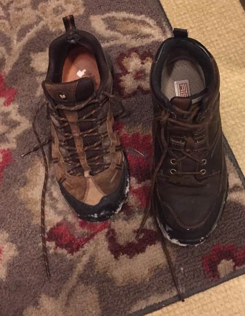 I was out and about running errands late Wednesday afternoon. I stamped the snow off my feet before stepping inside, set my bags down, shed my outer wear, bent down and untied my shoes, slipped my feet out, reached down to pick them up and put them away in the closet, and then finally looked at the shoes. Good grief. Well isn’t that the way it goes some days?
