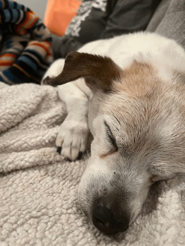 This is Ike. We let go of Ike this week. For these last few years, this was his happy place, on the couch, “watching” tv with his people nearby.