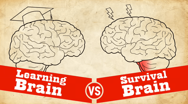 How does what you saw in this video apply to yourself and how you are experiencing your workplace, the news, the events, politics? How does it apply to those who are leading us, those that have prominent voices about current events? It seems to me that as a society, we are collectively the students in survival brain. If so, how is that impacting our ability to process news? To change our mind about things? To solve problems in a creative manner?